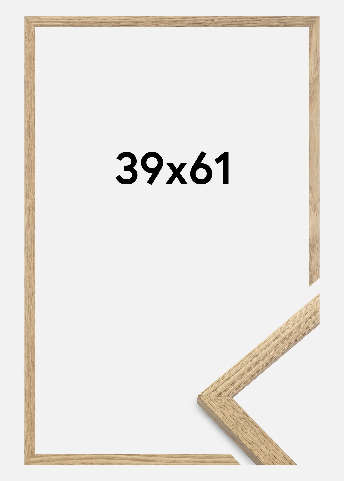 Rama este realizată din MDF cu o suprafață de culoare stejar și are un profil subțire de 14 mm. Există mult spațiu pentru a completa imaginile tale cu un passepartout de lux, datorită adâncimii interioare a ramei (adâncimea fantei) de 12 mm.
