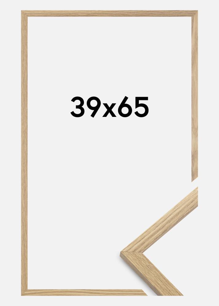 Rama este realizată din MDF cu o suprafață de culoare stejar și are un profil subțire de 14 mm. Există mult spațiu pentru a completa imaginile tale cu un passepartout de lux, datorită adâncimii interioare a ramei (adâncimea fantei) de 12 mm.