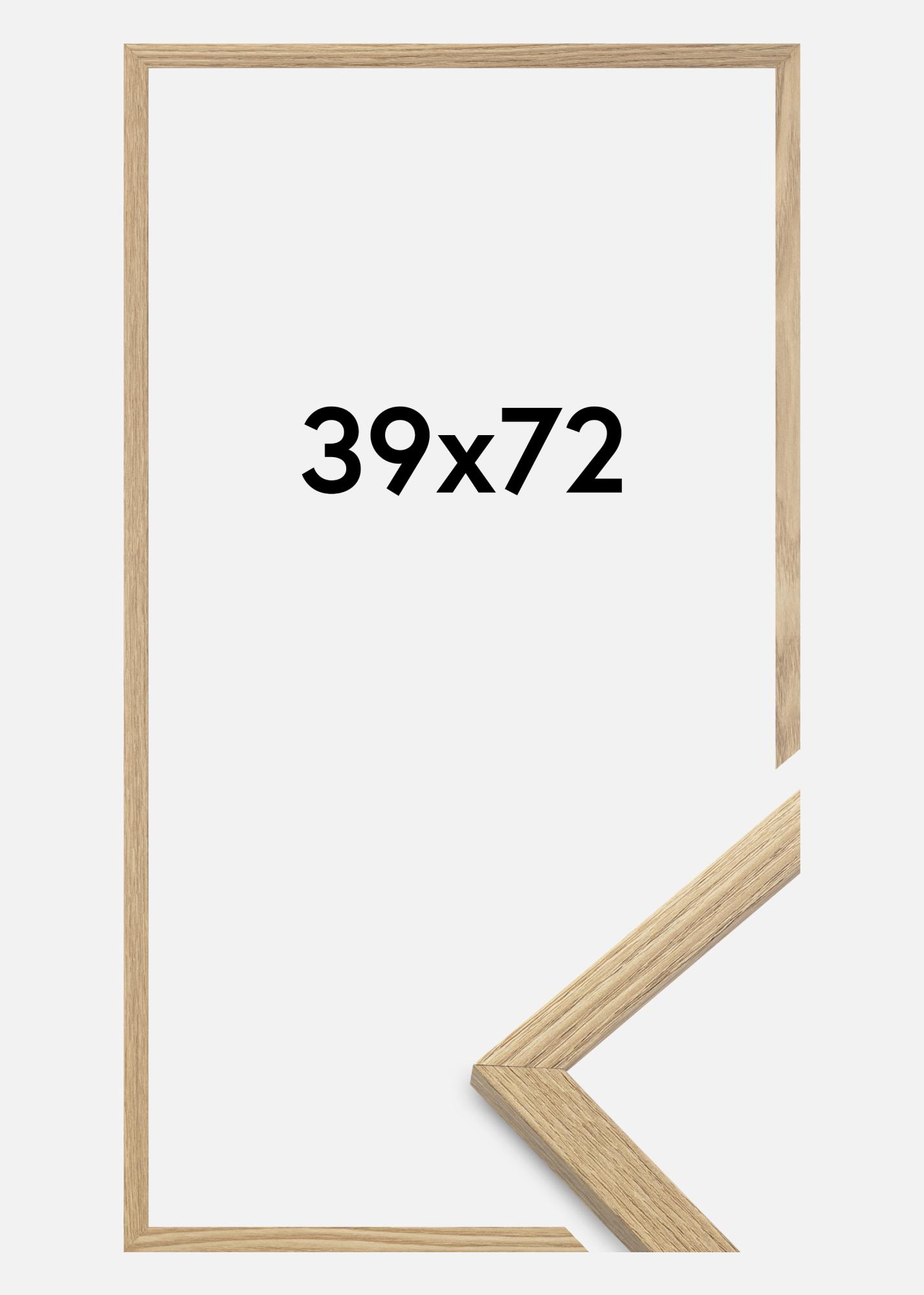 Rama este realizată din MDF cu o suprafață de culoare stejar și are un profil subțire de 14 mm. Există mult spațiu pentru a completa imaginile tale cu un passepartout de lux, datorită adâncimii interioare a ramei (adâncimea fantei) de 12 mm.
