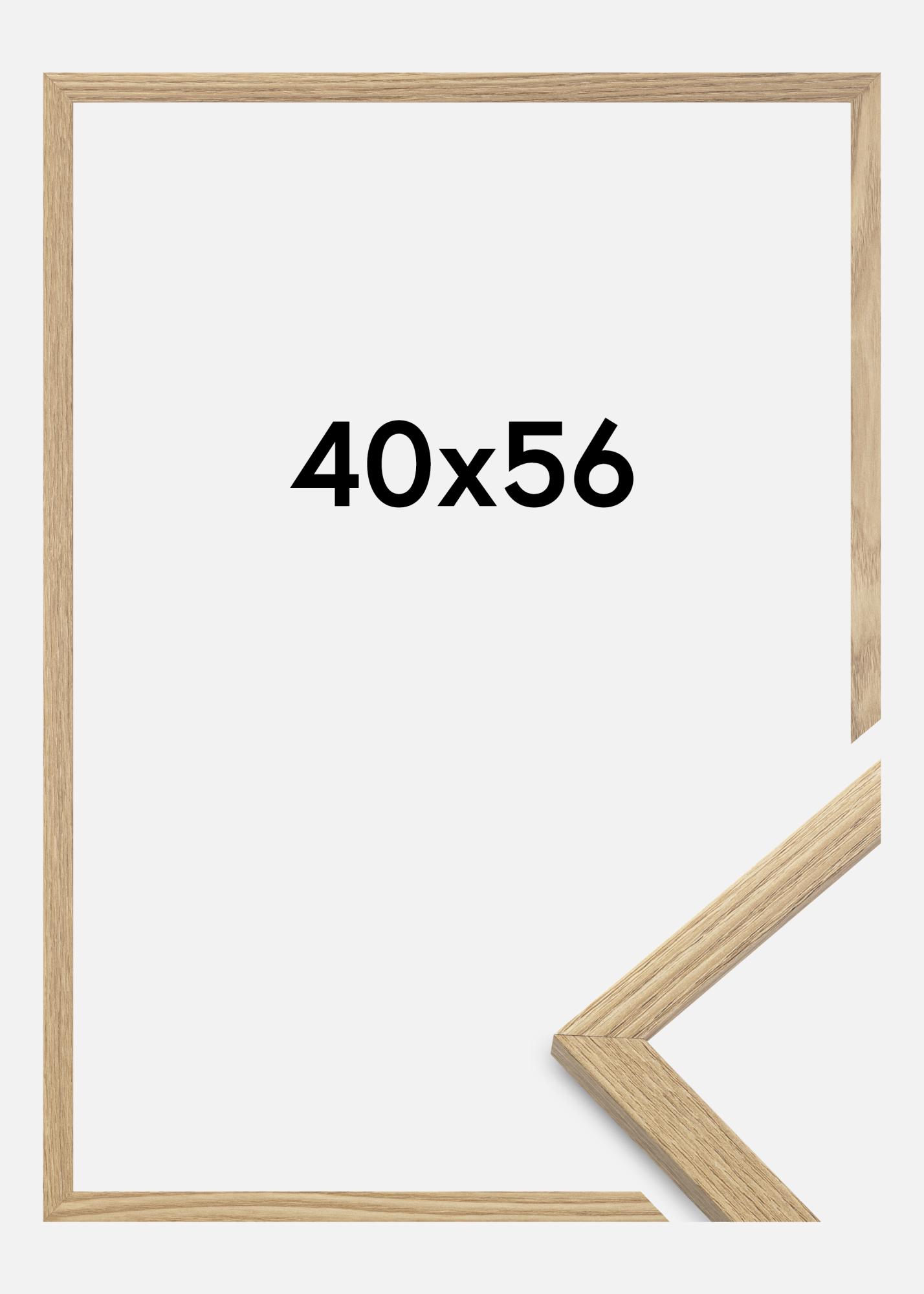 Rama este realizată din MDF cu o suprafață de culoare stejar și are un profil subțire de 14 mm. Există mult spațiu pentru a completa imaginile tale cu un passepartout de lux, datorită adâncimii interioare a ramei (adâncimea fantei) de 12 mm.