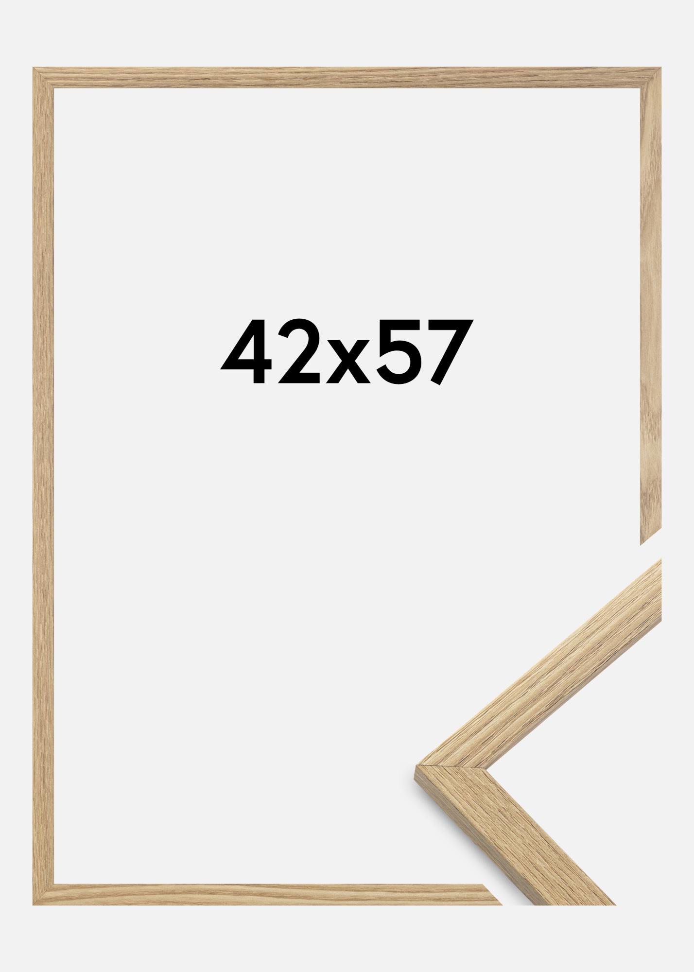 Rama este realizată din MDF cu o suprafață de culoare stejar și are un profil subțire de 14 mm. Există mult spațiu pentru a completa imaginile tale cu un passepartout de lux, datorită adâncimii interioare a ramei (adâncimea fantei) de 12 mm.