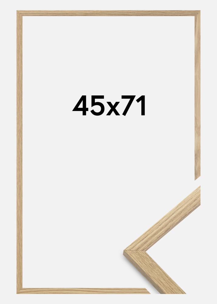Rama este realizată din MDF cu o suprafață de culoare stejar și are un profil subțire de 14 mm. Există mult spațiu pentru a completa imaginile tale cu un passepartout de lux, datorită adâncimii interioare a ramei (adâncimea fantei) de 12 mm.