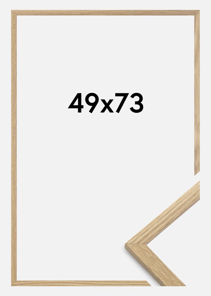 Rama este realizată din MDF cu o suprafață de culoare stejar și are un profil subțire de 14 mm. Există mult spațiu pentru a completa imaginile tale cu un passepartout de lux, datorită adâncimii interioare a ramei (adâncimea fantei) de 12 mm.