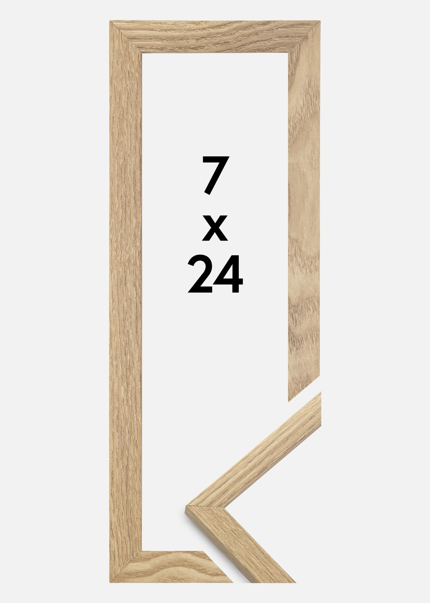 Rama este realizată din MDF cu o suprafață de culoare stejar și are un profil subțire de 14 mm. Există mult spațiu pentru a completa imaginile tale cu un passepartout de lux, datorită adâncimii interioare a ramei (adâncimea fantei) de 12 mm.