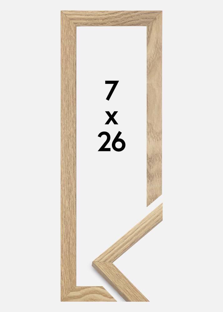 Rama este realizată din MDF cu o suprafață de culoare stejar și are un profil subțire de 14 mm. Există mult spațiu pentru a completa imaginile tale cu un passepartout de lux, datorită adâncimii interioare a ramei (adâncimea fantei) de 12 mm.