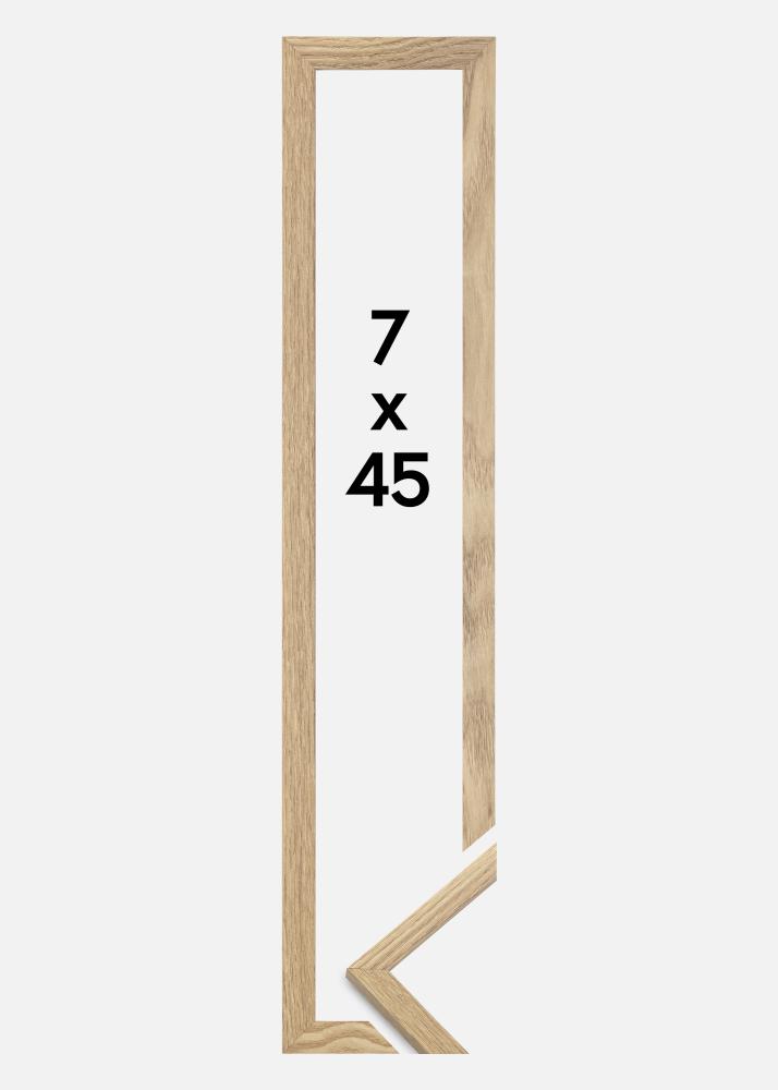 Rama este realizată din MDF cu o suprafață de culoare stejar și are un profil subțire de 14 mm. Există mult spațiu pentru a completa imaginile tale cu un passepartout de lux, datorită adâncimii interioare a ramei (adâncimea fantei) de 12 mm.