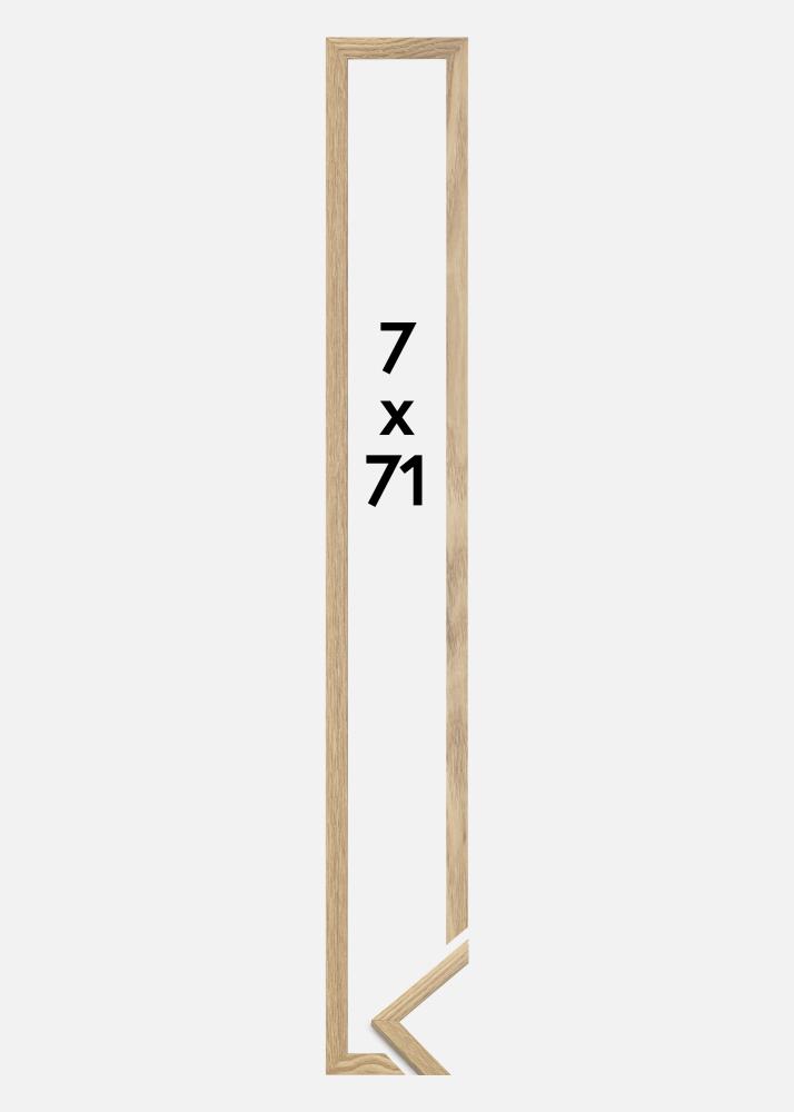 Rama este realizată din MDF cu o suprafață de culoare stejar și are un profil subțire de 14 mm. Există mult spațiu pentru a completa imaginile tale cu un passepartout de lux, datorită adâncimii interioare a ramei (adâncimea fantei) de 12 mm.