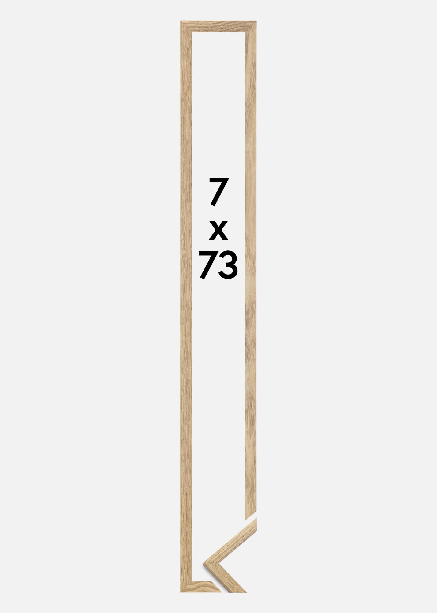 Rama este realizată din MDF cu o suprafață de culoare stejar și are un profil subțire de 14 mm. Există mult spațiu pentru a completa imaginile tale cu un passepartout de lux, datorită adâncimii interioare a ramei (adâncimea fantei) de 12 mm.