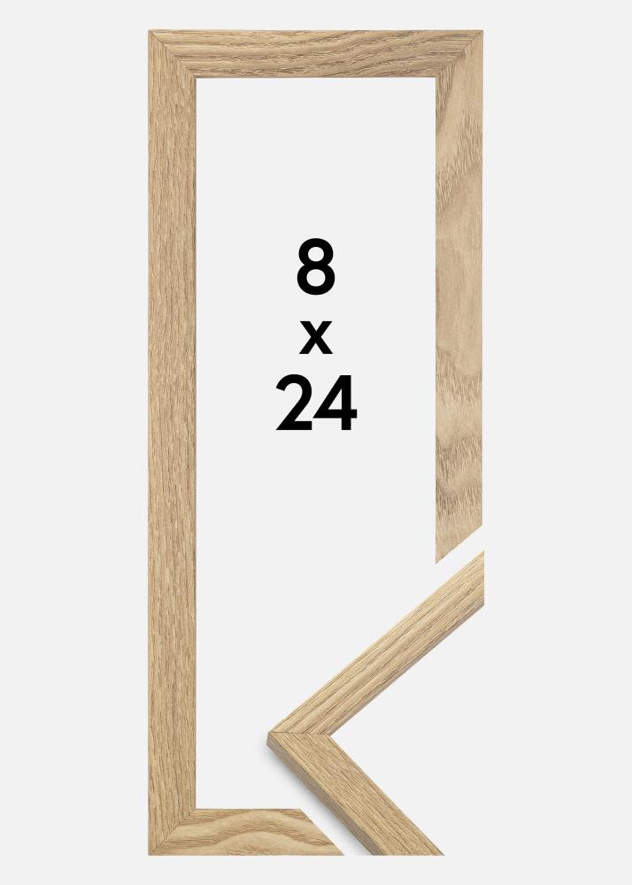 Rama este realizată din MDF cu o suprafață de culoare stejar și are un profil subțire de 14 mm. Există mult spațiu pentru a completa imaginile tale cu un passepartout de lux, datorită adâncimii interioare a ramei (adâncimea fantei) de 12 mm.