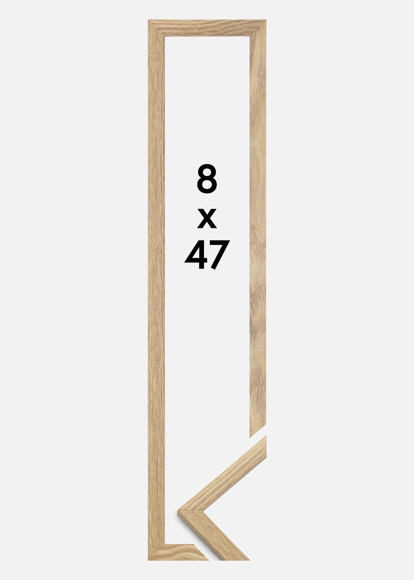 Rama este realizată din MDF cu o suprafață de culoare stejar și are un profil subțire de 14 mm. Există mult spațiu pentru a completa imaginile tale cu un passepartout de lux, datorită adâncimii interioare a ramei (adâncimea fantei) de 12 mm.