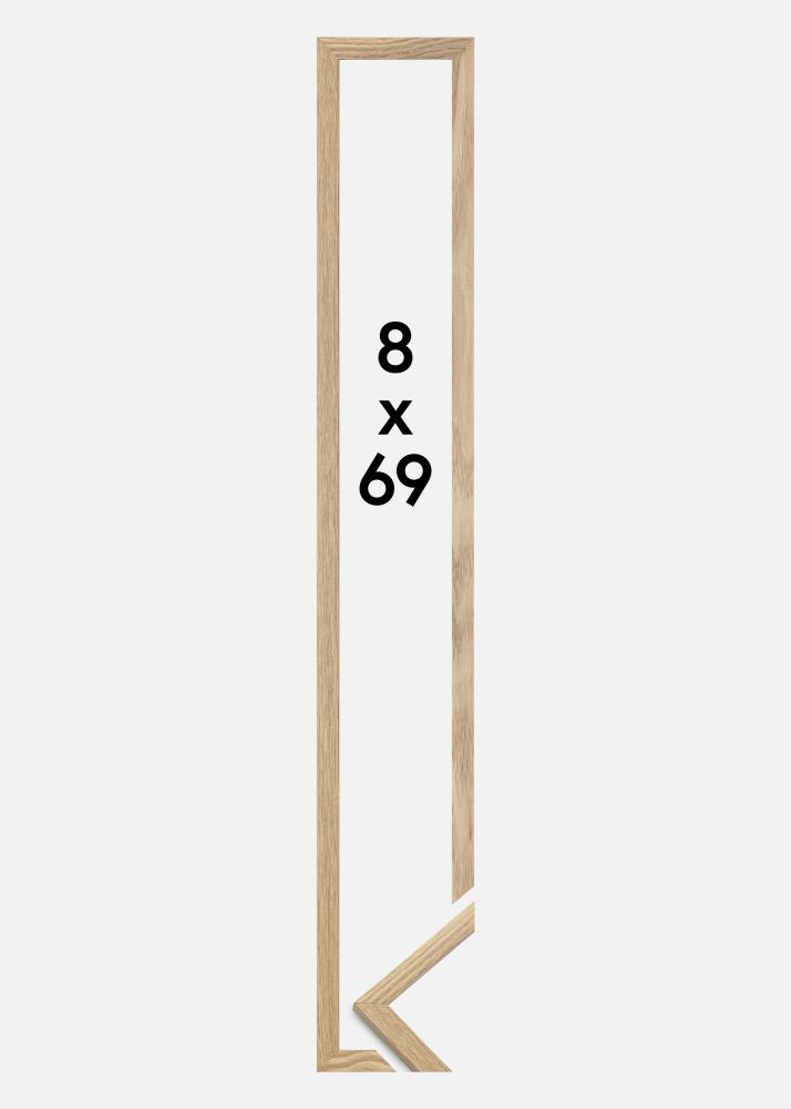 Rama este realizată din MDF cu o suprafață de culoare stejar și are un profil subțire de 14 mm. Există mult spațiu pentru a completa imaginile tale cu un passepartout de lux, datorită adâncimii interioare a ramei (adâncimea fantei) de 12 mm.