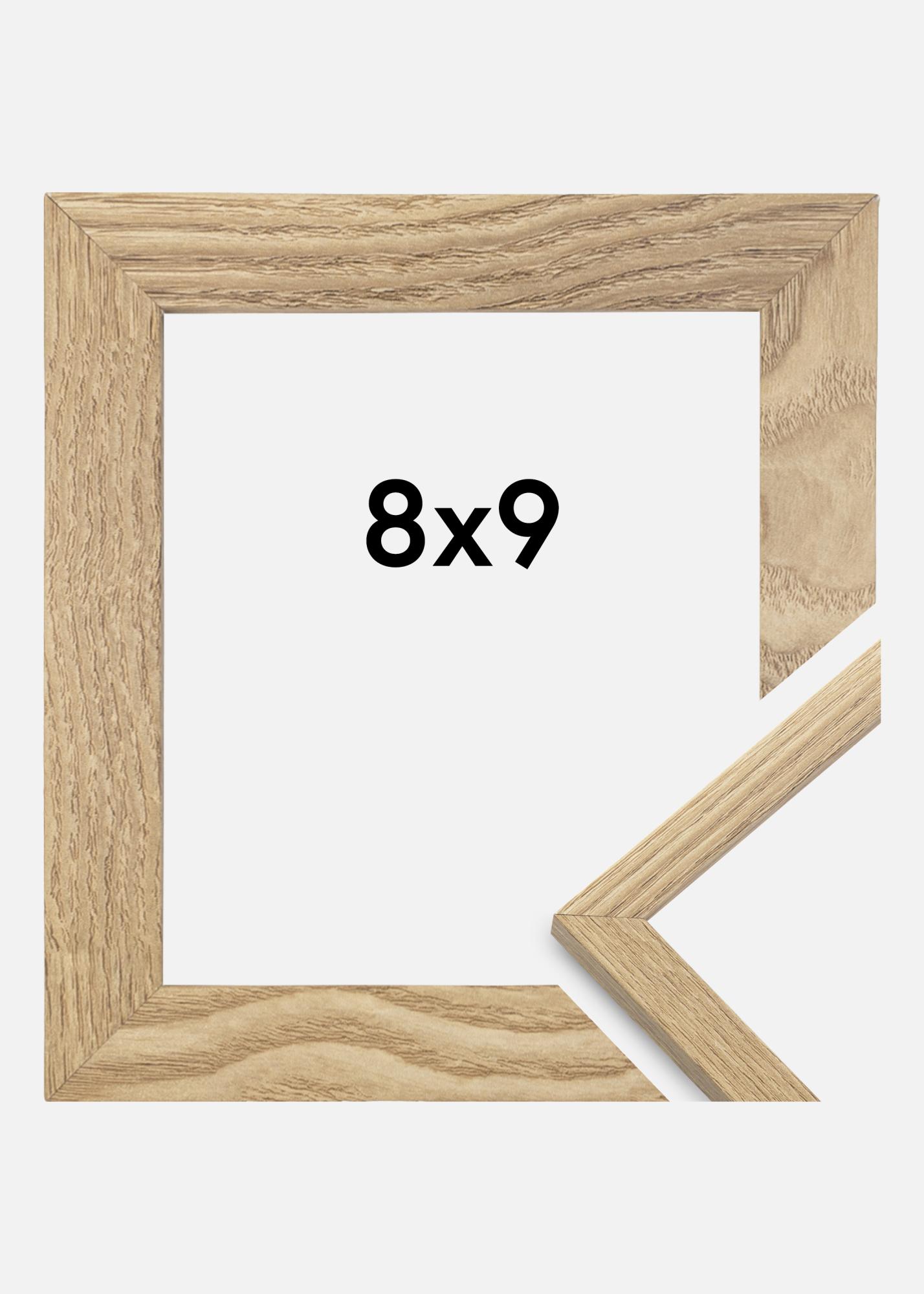 Rama este realizată din MDF cu o suprafață de culoare stejar și are un profil subțire de 14 mm. Există mult spațiu pentru a completa imaginile tale cu un passepartout de lux, datorită adâncimii interioare a ramei (adâncimea fantei) de 12 mm.