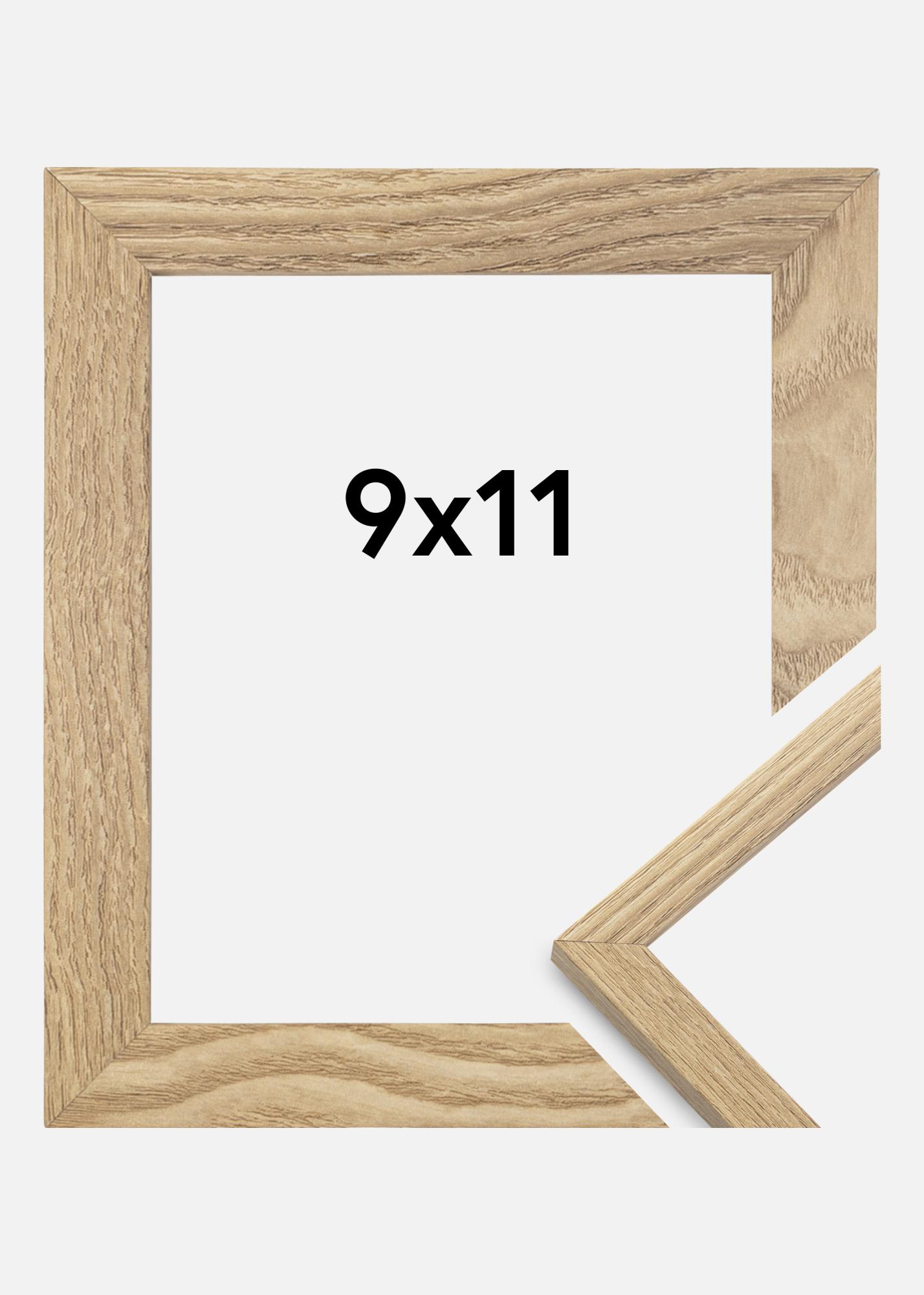 Rama este realizată din MDF cu o suprafață de culoare stejar și are un profil subțire de 14 mm. Există mult spațiu pentru a completa imaginile tale cu un passepartout de lux, datorită adâncimii interioare a ramei (adâncimea fantei) de 12 mm.