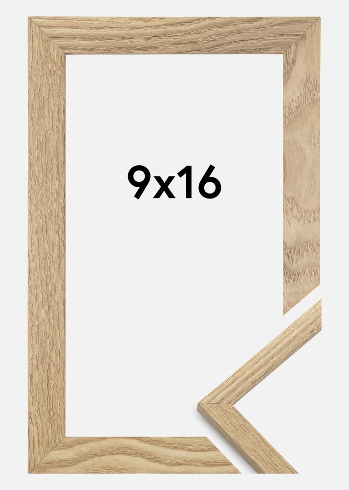 Rama este realizată din MDF cu o suprafață de culoare stejar și are un profil subțire de 14 mm. Există mult spațiu pentru a completa imaginile tale cu un passepartout de lux, datorită adâncimii interioare a ramei (adâncimea fantei) de 12 mm.
