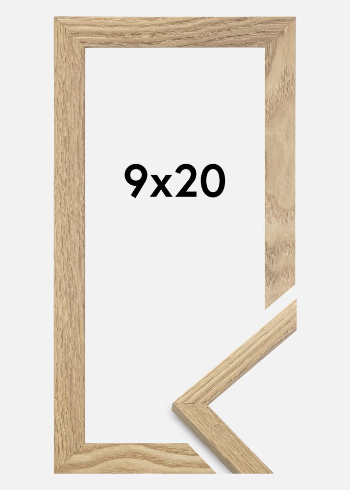 Rama este realizată din MDF cu o suprafață de culoare stejar și are un profil subțire de 14 mm. Există mult spațiu pentru a completa imaginile tale cu un passepartout de lux, datorită adâncimii interioare a ramei (adâncimea fantei) de 12 mm.