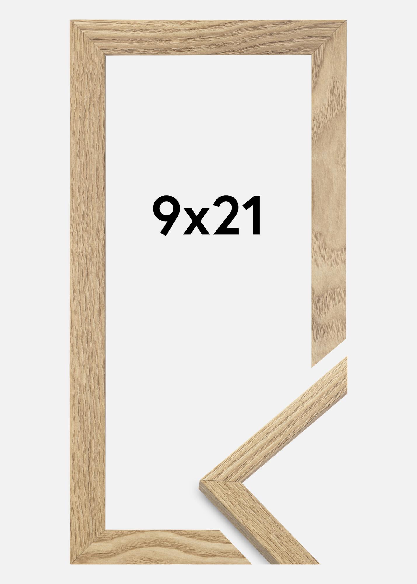 Rama este realizată din MDF cu o suprafață de culoare stejar și are un profil subțire de 14 mm. Există mult spațiu pentru a completa imaginile tale cu un passepartout de lux, datorită adâncimii interioare a ramei (adâncimea fantei) de 12 mm.