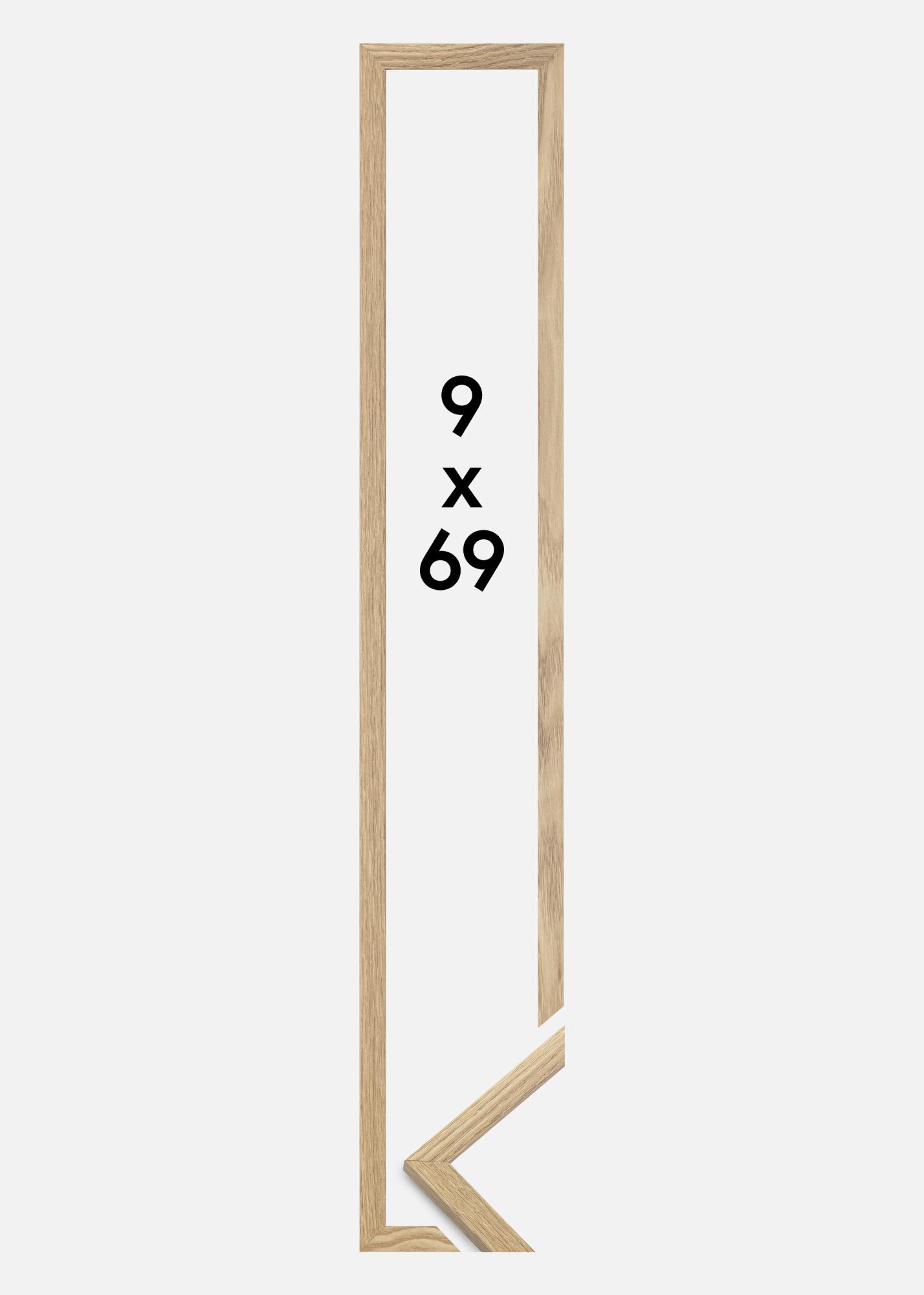 Rama este realizată din MDF cu o suprafață de culoare stejar și are un profil subțire de 14 mm. Există mult spațiu pentru a completa imaginile tale cu un passepartout de lux, datorită adâncimii interioare a ramei (adâncimea fantei) de 12 mm.