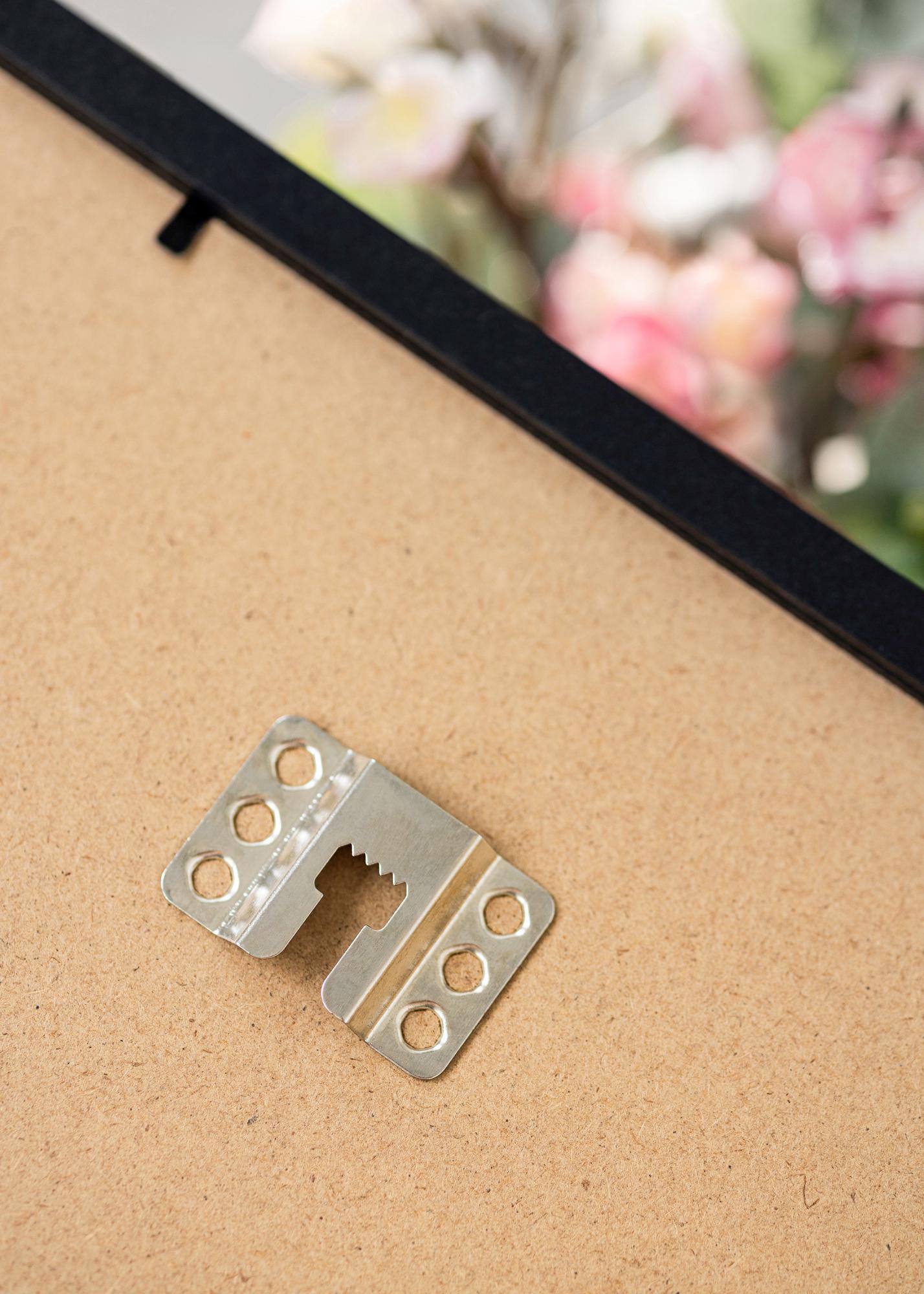 Rama este echipată cu agățători metalice pe spate, ceea ce face ușoară montarea acesteia atât orizontal, cât și vertical. Acest lucru îți oferă flexibilitatea de a adapta prezentarea în funcție de spațiul și preferințele tale. Adâncimea ramei este de 15 mm, contribuind la aspectul său elegant și sofisticat.