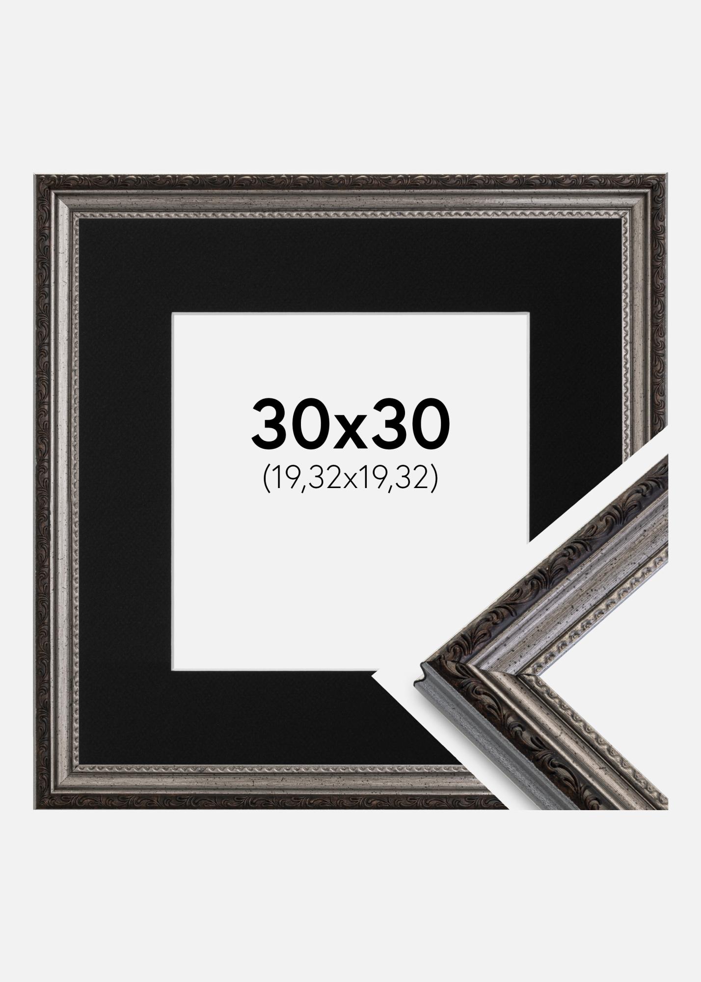 Ramă Abisko Argintiu 30x30 cm - Paspartu Negru 8x8 inches