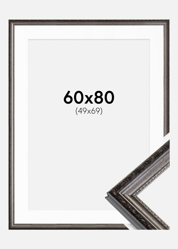 Ramă Abisko Argintiu 60x80 cm - Paspartu Alb 50x70 cm