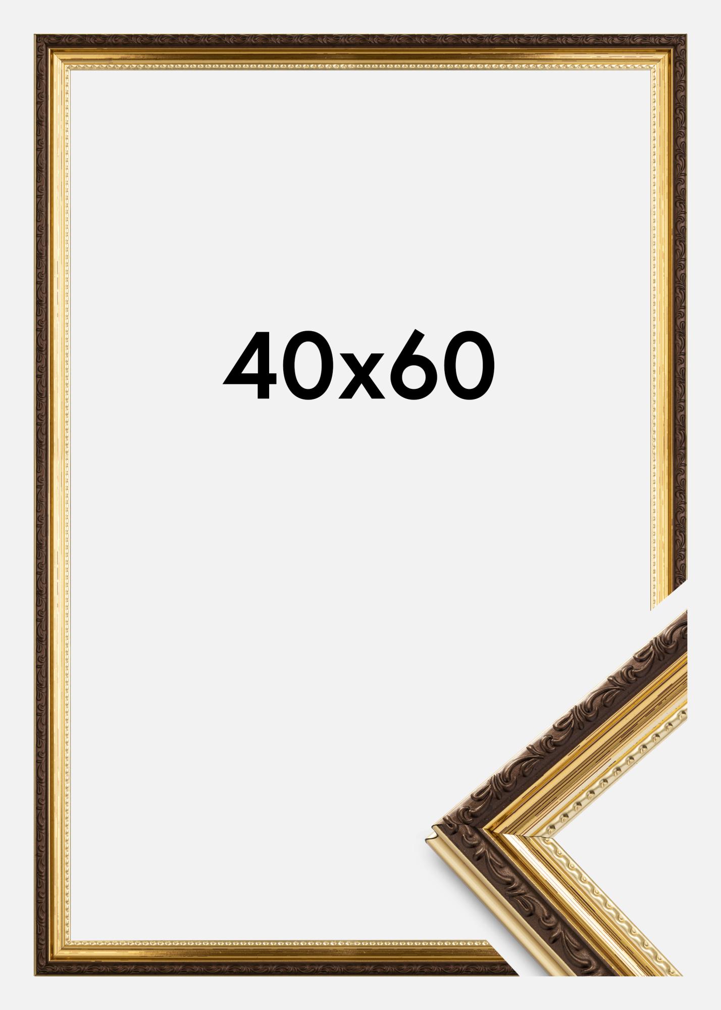 Cauți o ramă frumos decorată într-un stil mai vechi? Abisko Acril Gheață Aur este o ramă solidă de aur cu ornamente incredibil de elegante. Lista ramei are o lățime de 25 mm și o culoare aurie strălucitoare cu o bordură maro decorativă în mijloc. De asemenea, partea aurie este împodobită, cu un model unduitor în apropierea sticlei.