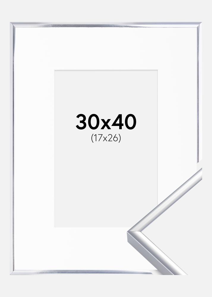 Ramă Aluminiu Argintiu sidefat 30x40 cm - Paspartu Alb 18x27 cm