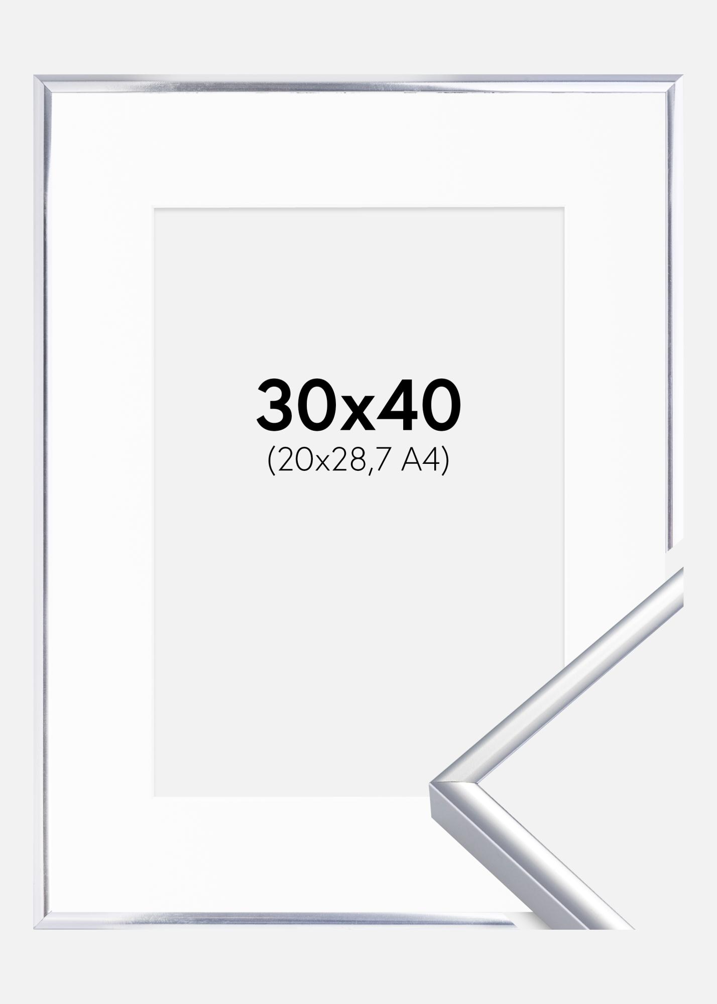 Ramă Aluminiu Argintiu sidefat 30x40 cm - Paspartu Alb 21x29,7 cm (A4)