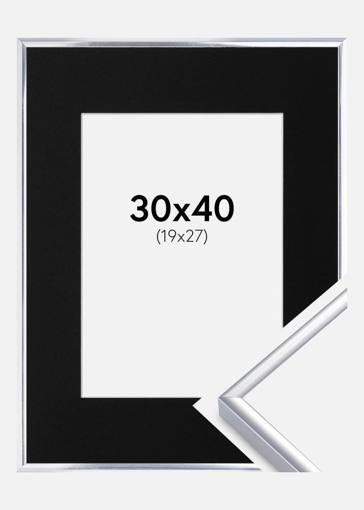 Ramă Aluminiu Argintiu sidefat 30x40 cm - Paspartu Negru 20x28 cm