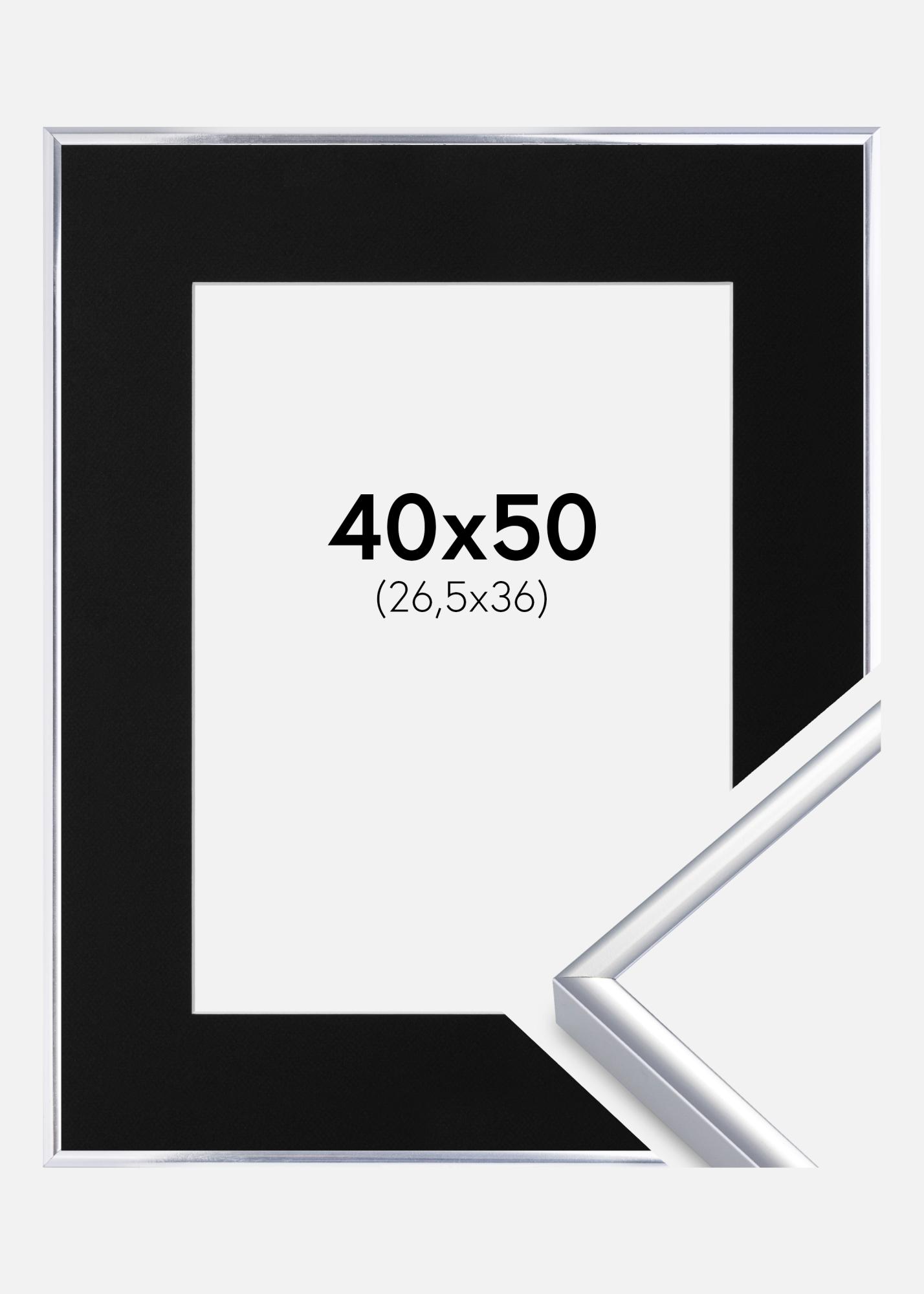 Ramă Aluminiu Argintiu sidefat 40x50 cm - Paspartu Negru 27,5x37 cm