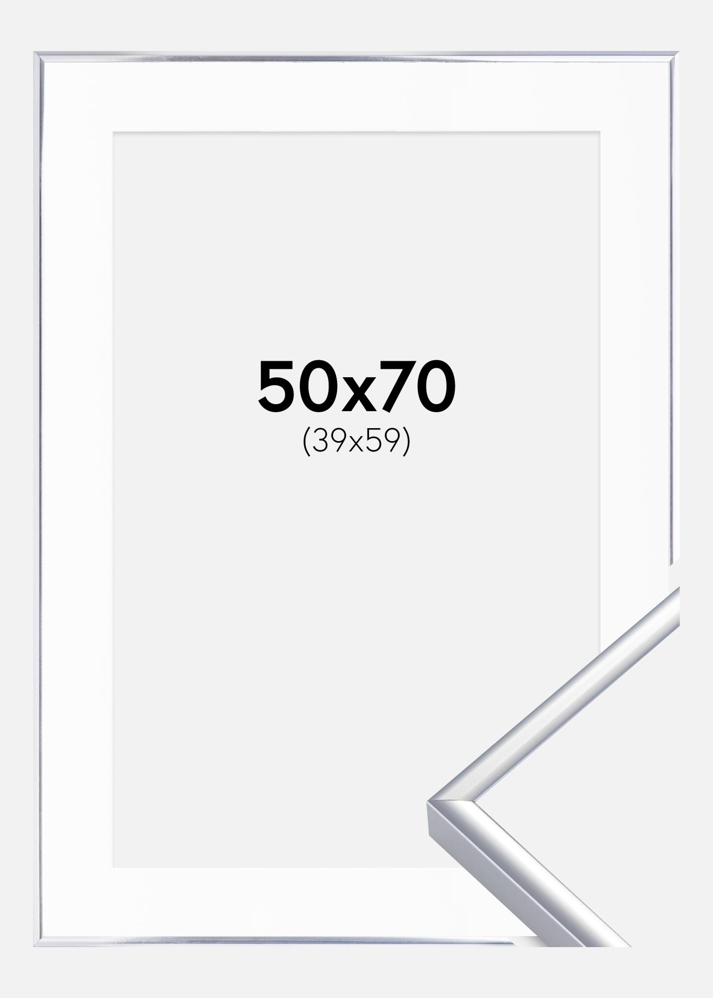 Ramă Aluminiu Argintiu sidefat 50x70 cm - Paspartu Alb 40x60 cm