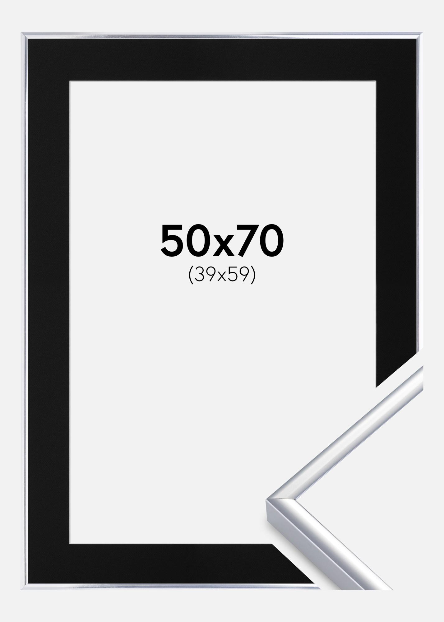 Ramă Aluminiu Argintiu sidefat 50x70 cm - Paspartu Negru 40x60 cm