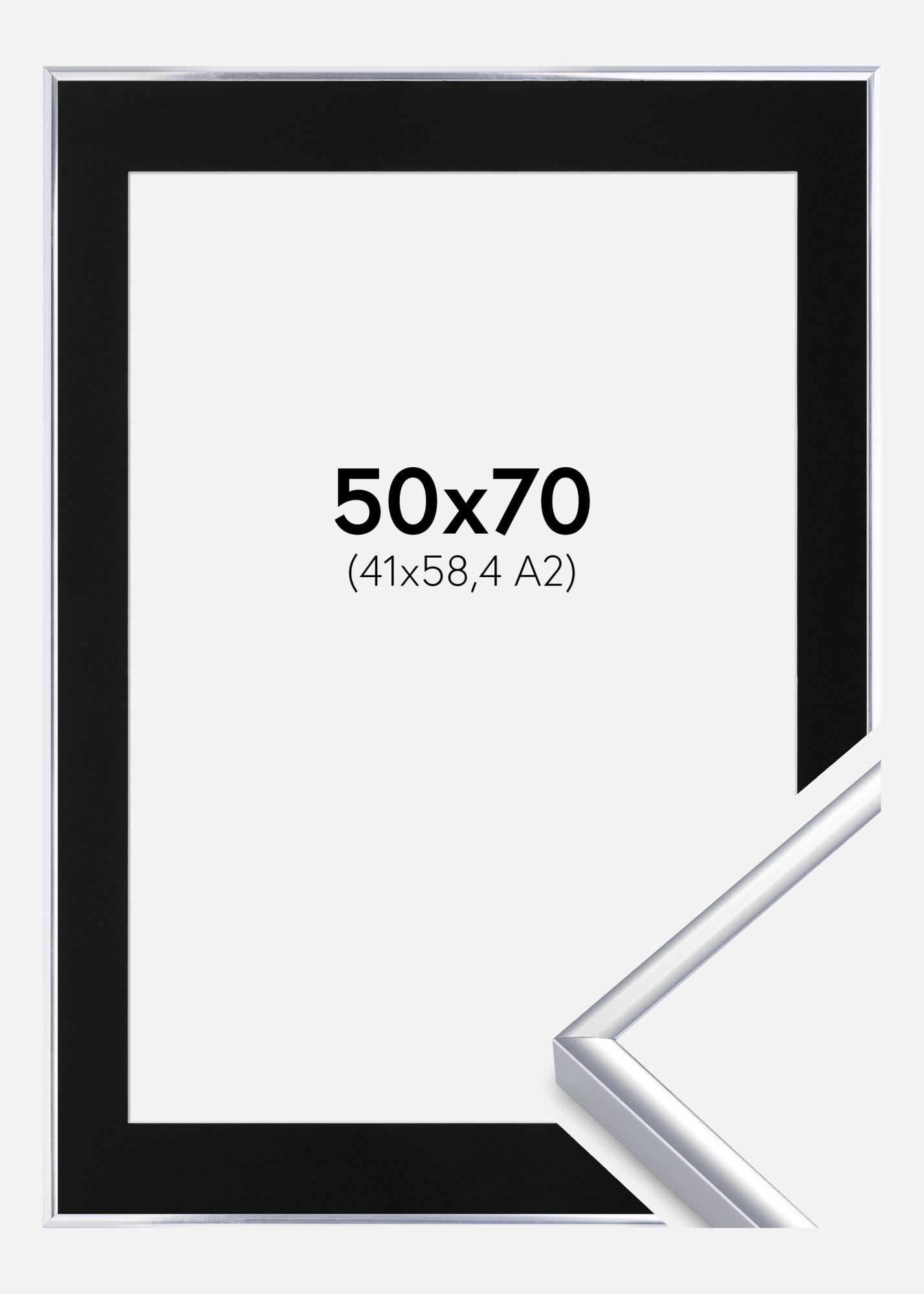 Ramă Aluminiu Argintiu sidefat 50x70 cm - Paspartu Negru 42x59,4 cm (A2)