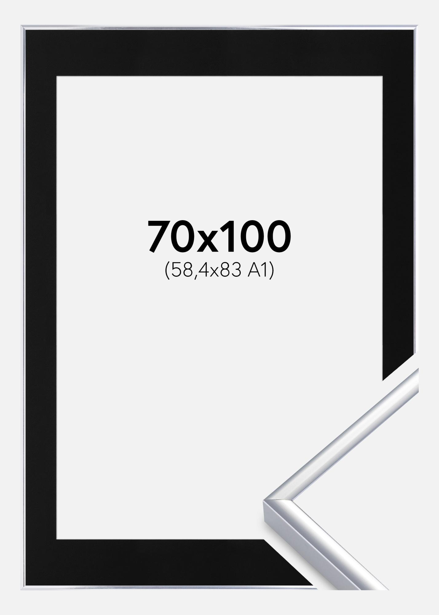 Ramă Aluminiu Argintiu sidefat 70x100 cm - Paspartu Negru 59,4x84 cm (A1)