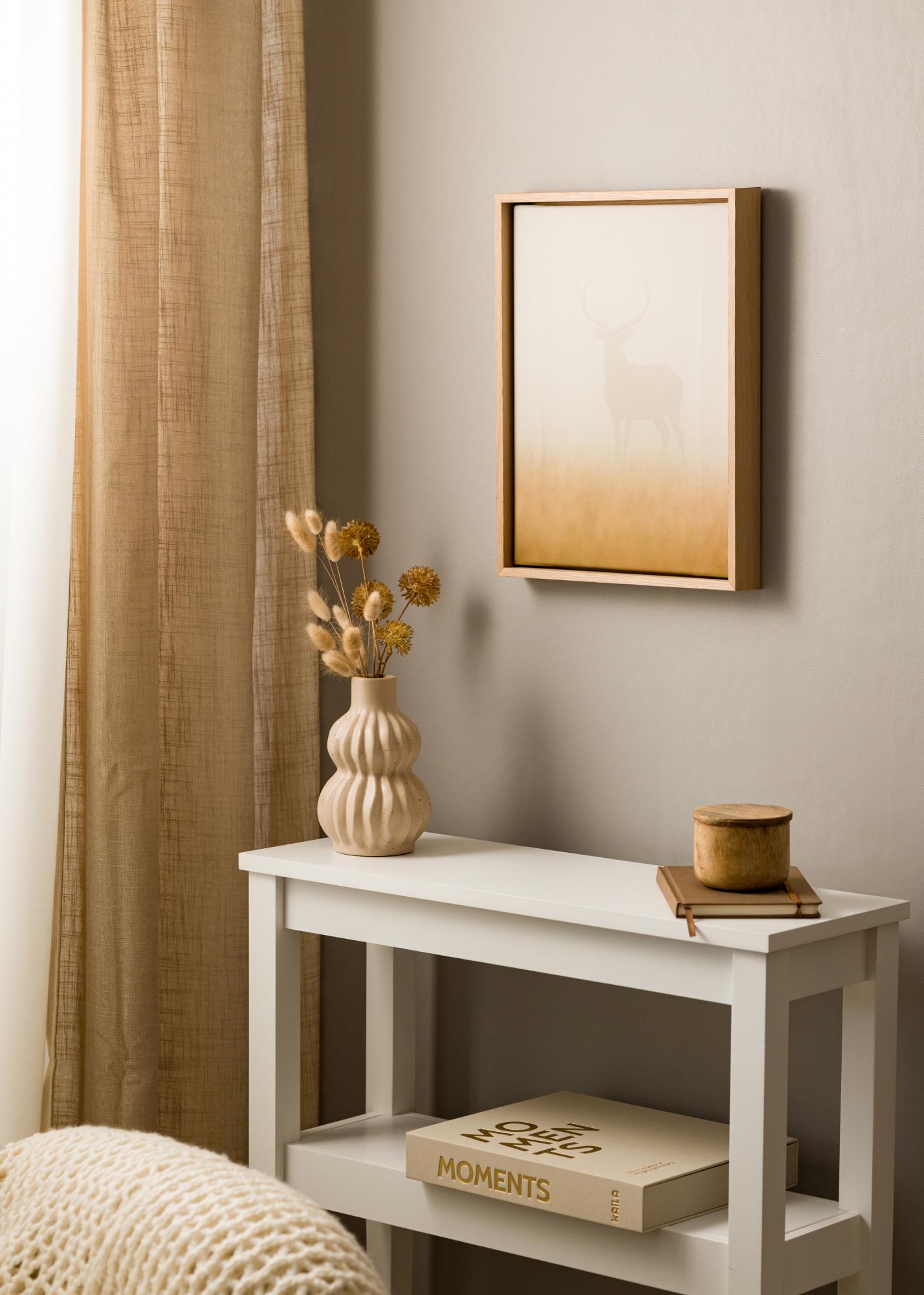 Rama Anubis Canvasram Stejar este o ramă canvas personalizată care este fabricată în propriul nostru atelier de rame. Această ramă foto este proiectată pentru a se potrivi cu tablourile pe pânză cu o adâncime de 28–38 mm, oferind un efect elegant de plutire în jurul motivului tău. Cu un finisaj de culoarea stejarului, sunt evidențiate fibrele naturale ale lemnului, creând o senzație caldă și atemporală.