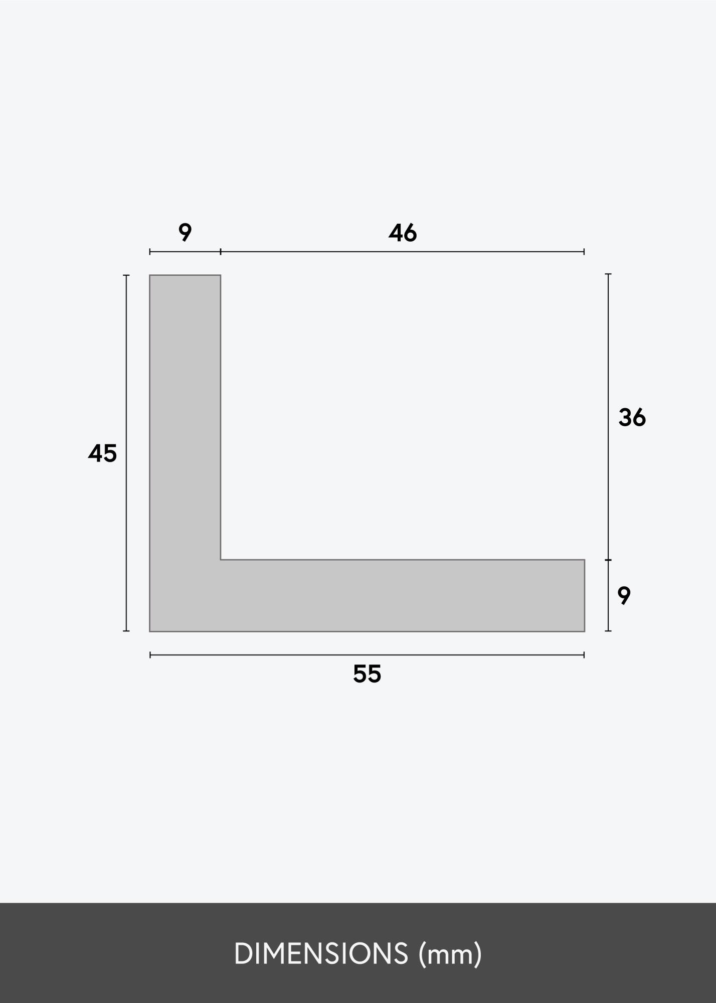 Rama are o listă de ramă de 55 mm lățime și o adâncime de 45 mm, ceea ce o face atât robustă cât și stilată. Suprafața netedă, mată, împreună cu marginile drepte și frontul îngust creează o expresie modernă care se potrivește în majoritatea caselor. Fabricată din pin, această ramă de tablou combină durabilitatea cu estetica.