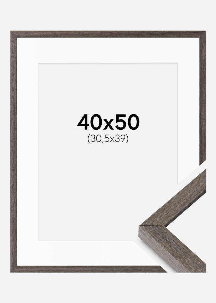 Ramă Gri Stejar Ares 40x50 cm - Paspartuuri Alb 31,5x40 cm