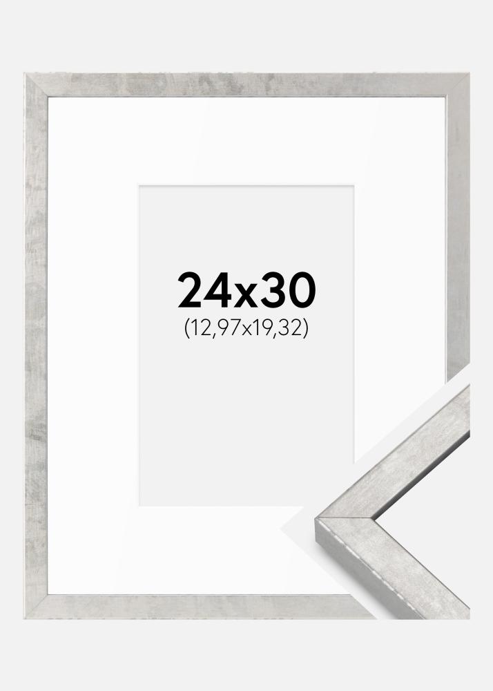 Ramă Ares Argint 24x30 cm - Paspartuuri Alb 5,5x8 inches