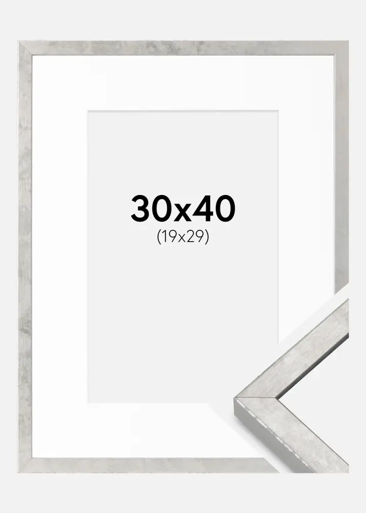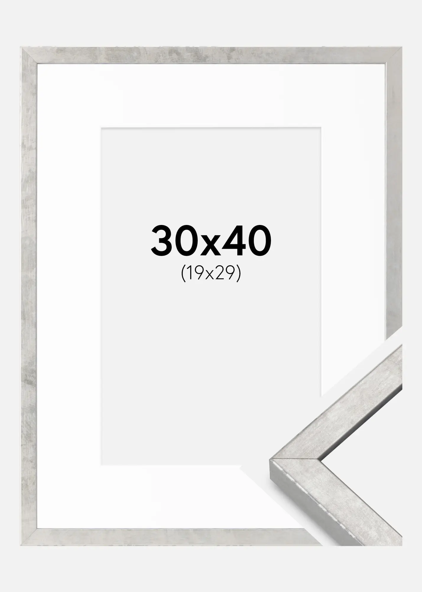 Ramă Ares Argint 30x40 cm - Paspartuuri Alb 20x30 cm