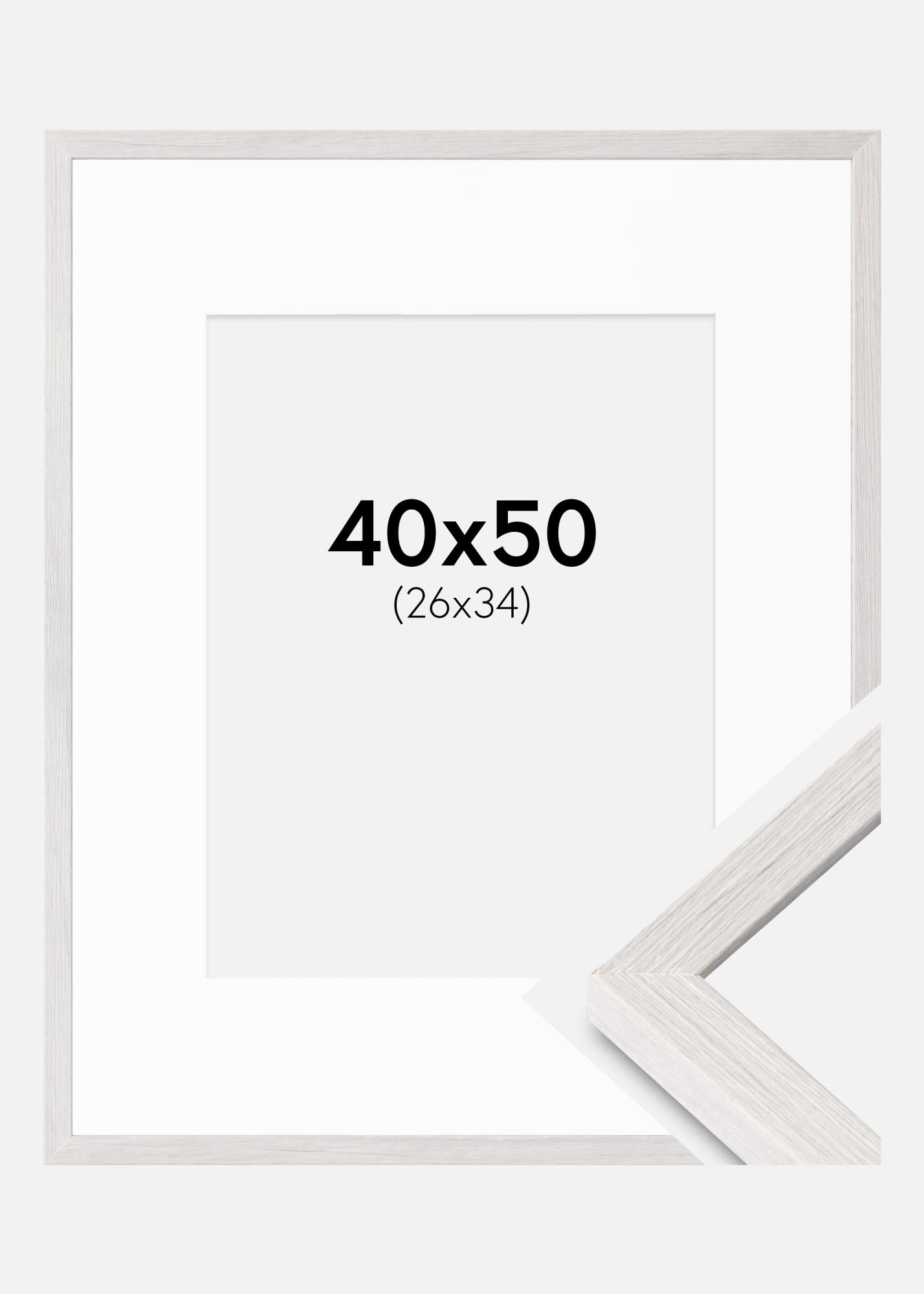 Ramă Ares Alb Stejar 40x50 cm - Paspartuuri Alb 27x35 cm