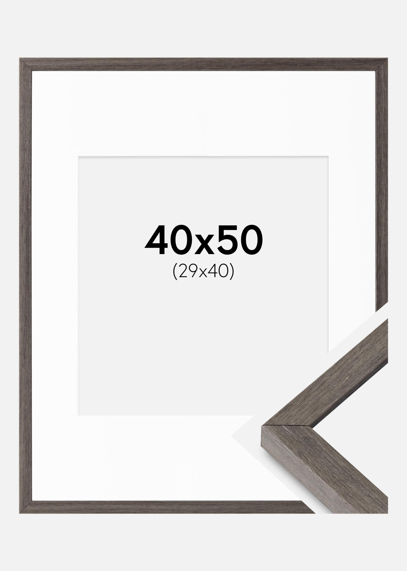 Ramă Gri Stejar Ares 40x50 cm - Paspartuuri Alb 30x41 cm