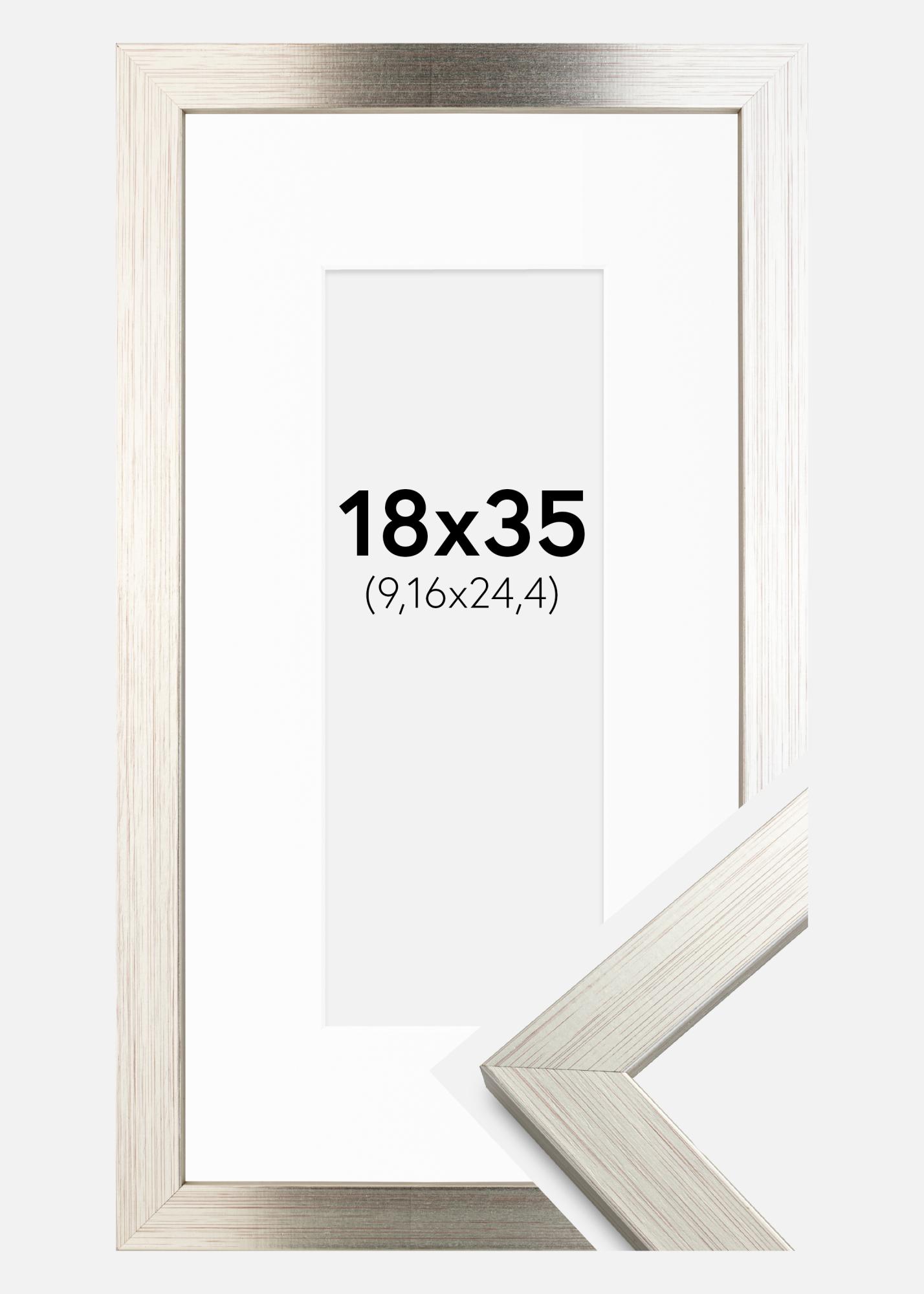 Ramă Argintiu Wood 18x35 cm - Paspartu Alb 4x10 inches