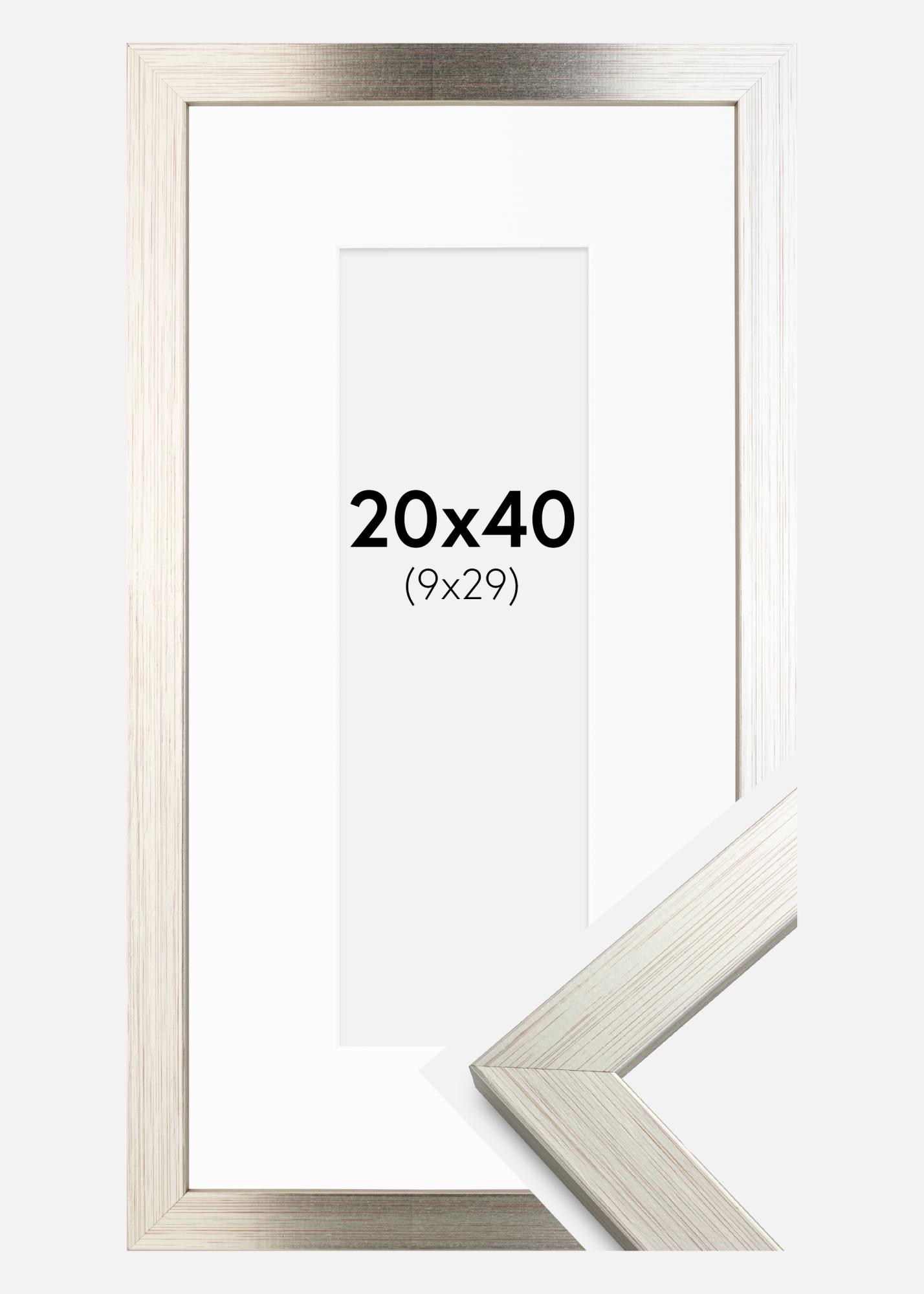Ramă Argintiu Wood 20x40 cm - Paspartu Alb 10x30 cm