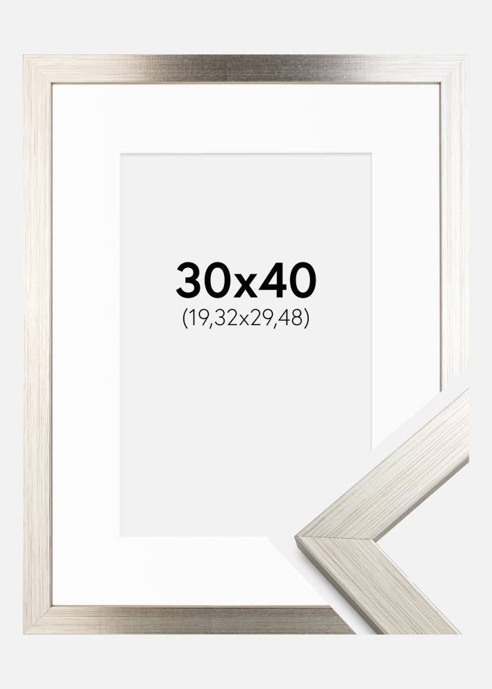 Ramă Argintiu Wood 30x40 cm - Paspartu Alb 8x12 inches