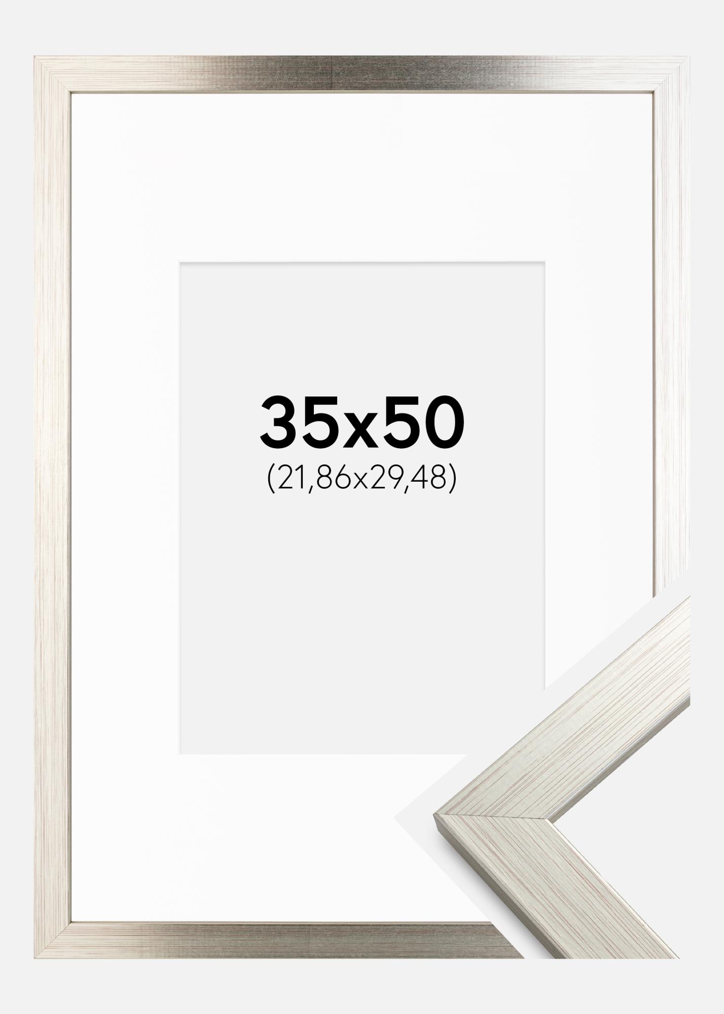Ramă Argintiu Wood 35x50 cm - Paspartu Alb 9x12 inches