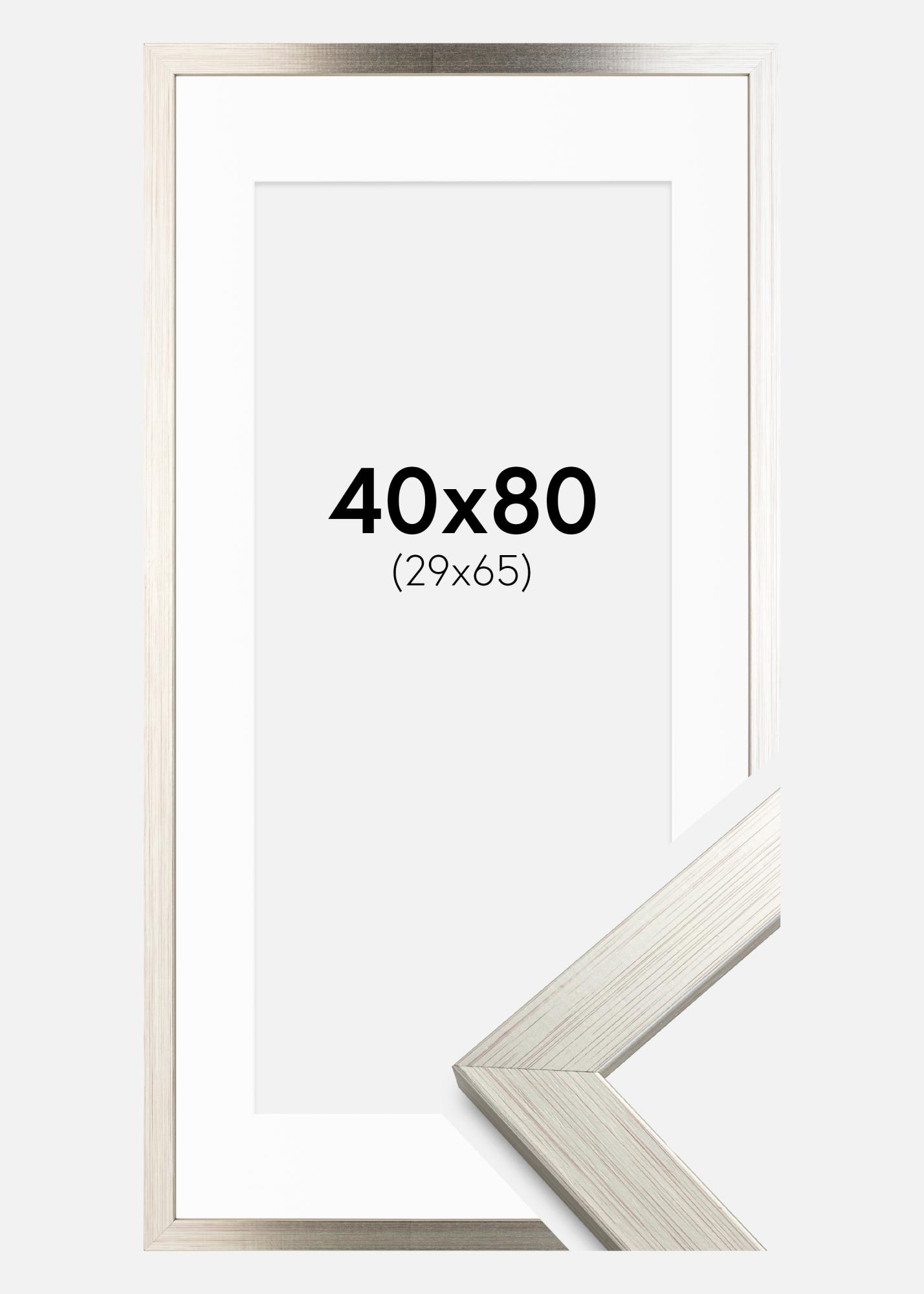 Ramă Argintiu Wood 40x80 cm - Paspartu Alb 30x66 cm