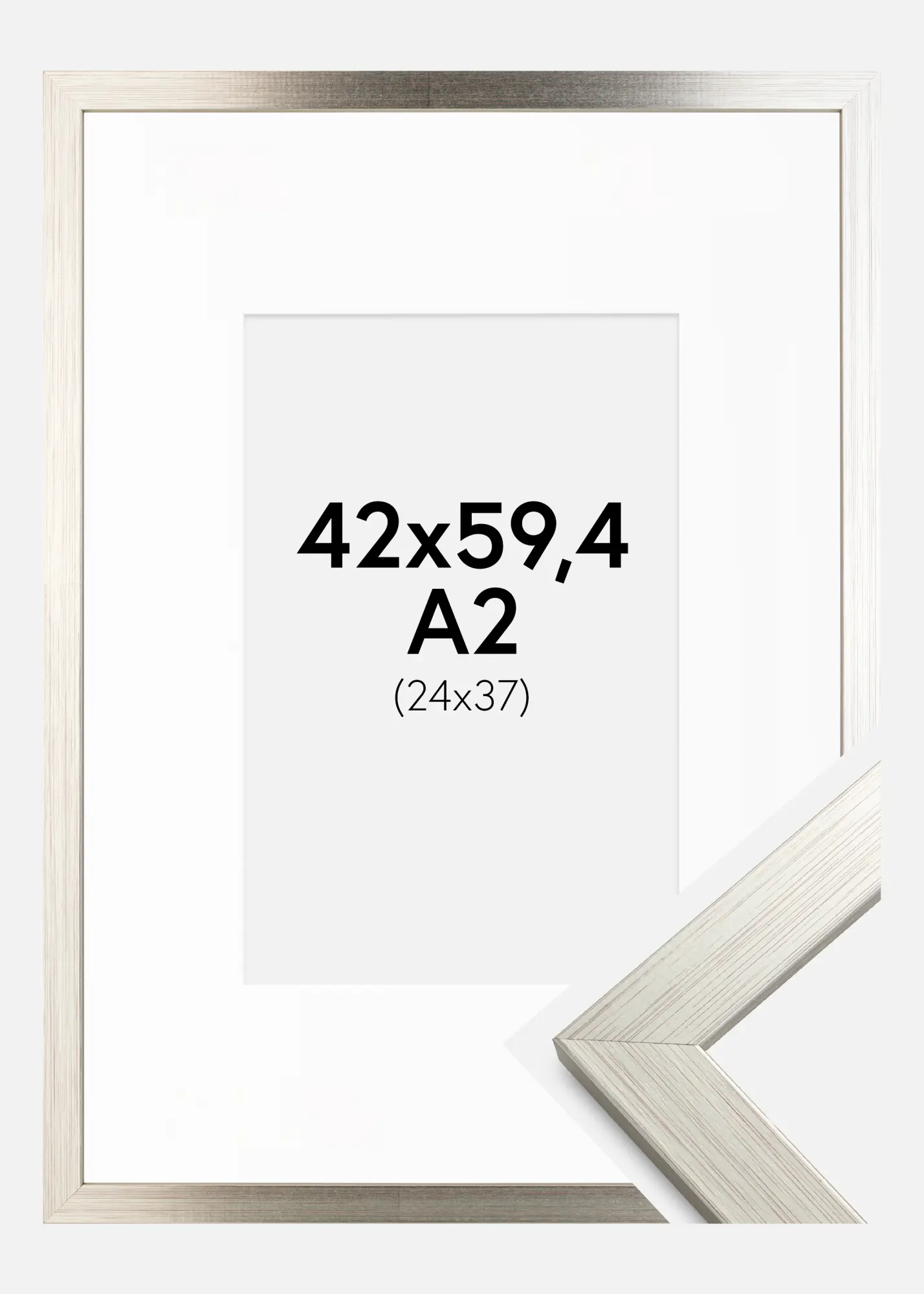 Ramă Argintiu Wood 42x59,4 cm (A2) - Paspartu Alb 25x38 cm