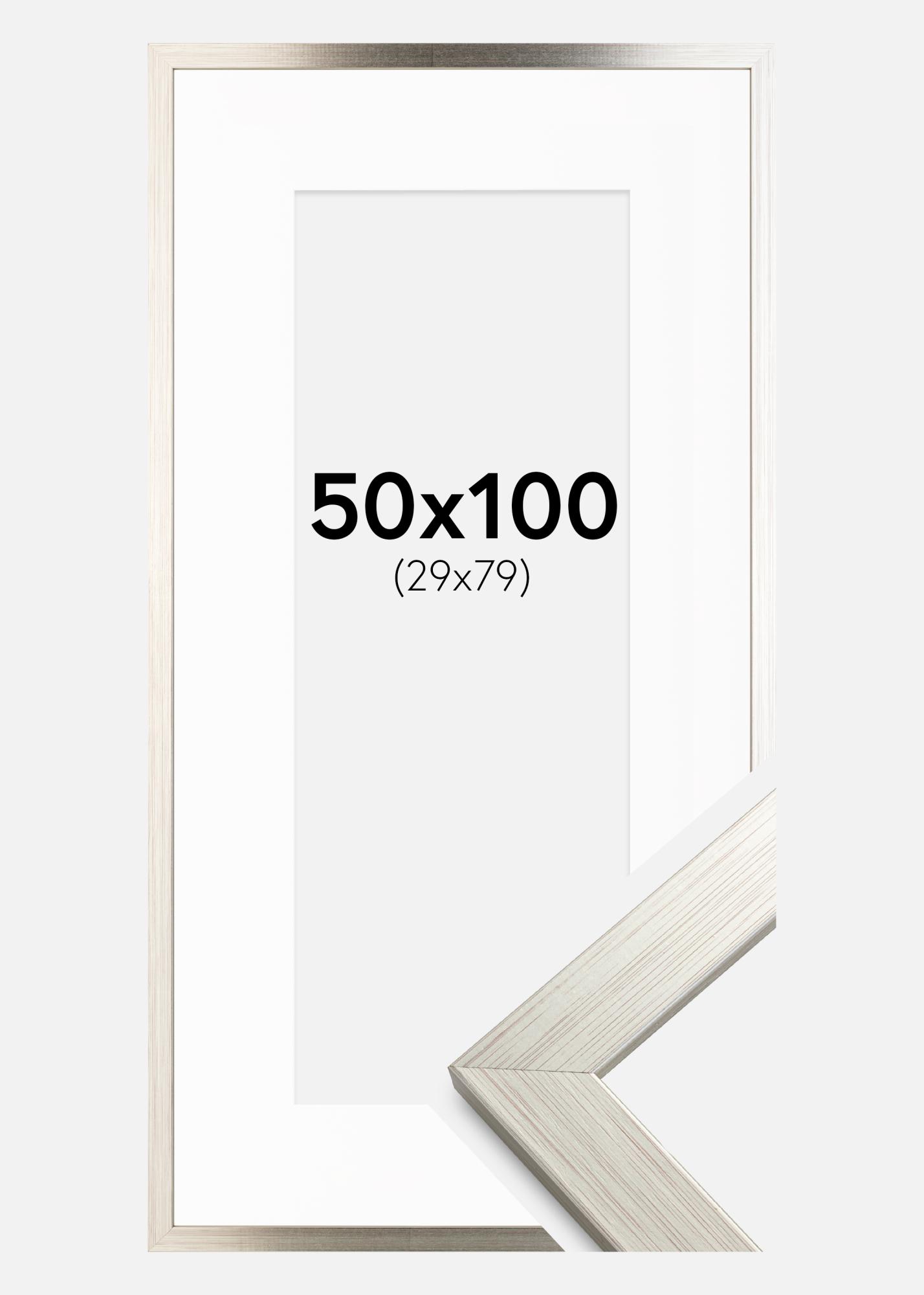 Ramă Argintiu Wood 50x100 cm - Paspartu Alb 30x80 cm