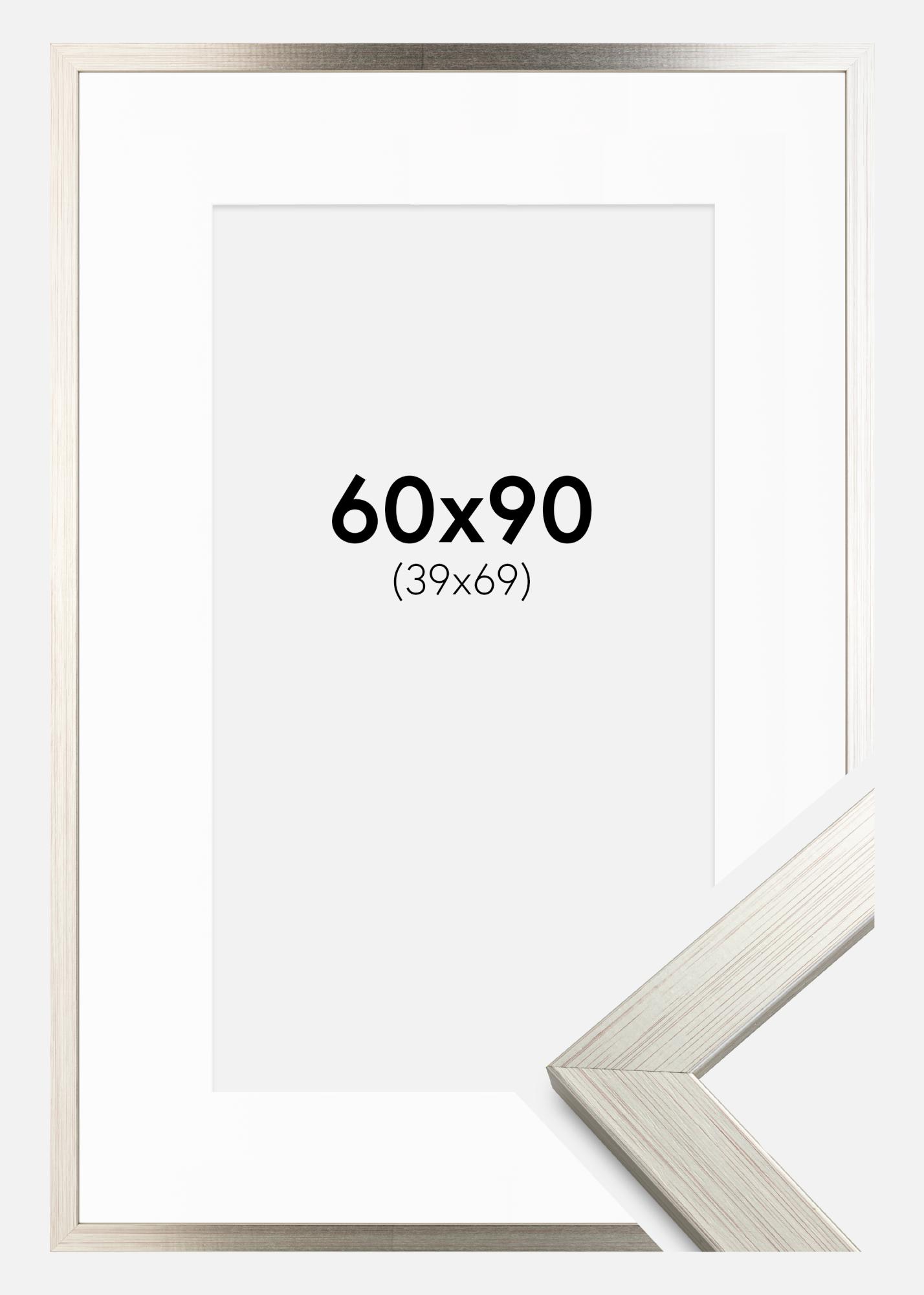 Ramă Argintiu Wood 60x90 cm - Paspartu Alb 40x70 cm
