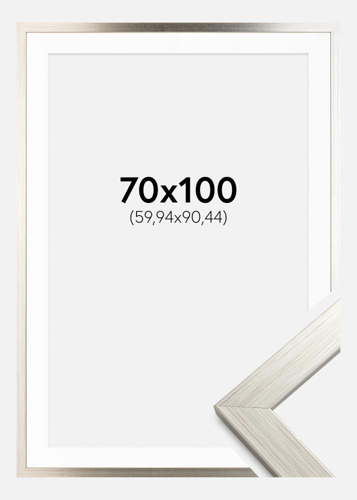 Ramă Argintiu Wood 70x100 cm - Paspartu Alb 24x36 inches