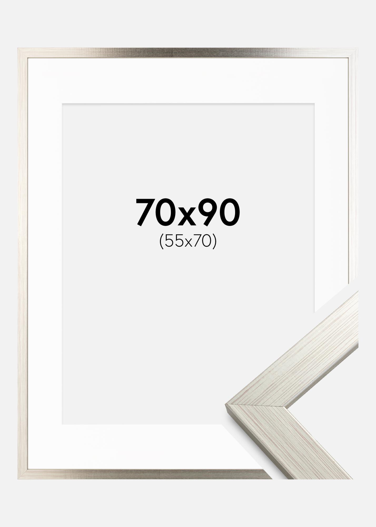 Ramă Argintiu Wood 70x90 cm - Paspartu Alb 56x71 cm